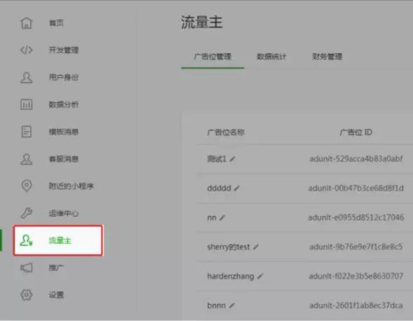 開通流程:進入微信公眾平臺小程序后臺,點擊左側(cè)面板“流量主”,滿足開通門檻的小程序開發(fā)者直接點擊“開通”即可創(chuàng)建相應(yīng)的廣告位。