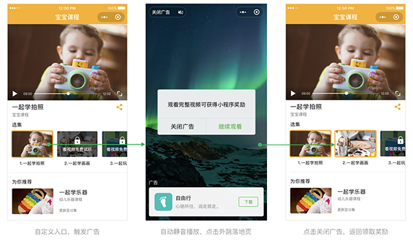 1、小程序激勵式視頻廣告是指用戶在小程序內(nèi)主動觸發(fā)的一種廣告模式,用戶完成廣告視頻觀看后可獲得流量主設(shè)定的相應(yīng)獎勵。