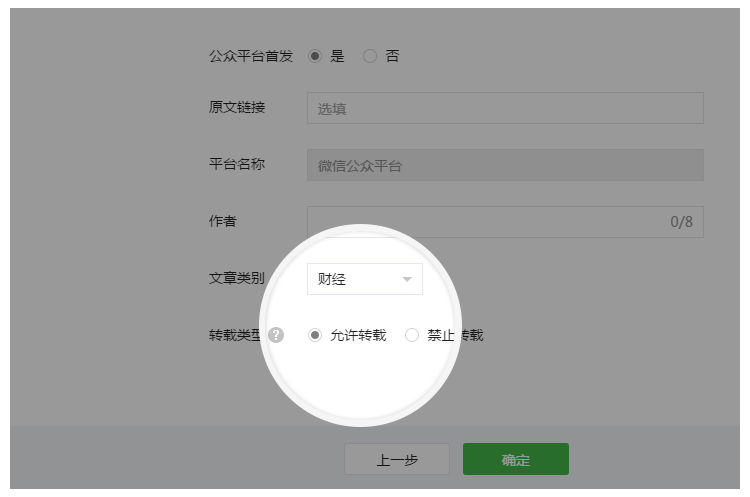 公眾平臺支持原創文章選擇轉載類型