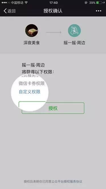 2. 在確認頁,運營者可以點擊“自定義權限”,選擇部分權限授權給第三方平臺。