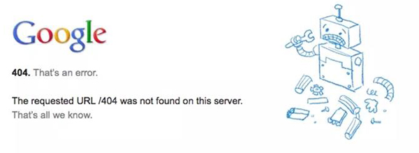 谷歌是一家位于美國的跨國科技企業,成立于1998年9月4日,是國內外公認的全球最大的搜索引擎。Google在不同節日的Logo設計一直別出心裁,而它的404頁面也不例外。對于大家來說最熟悉的,可能就是這幅手繪風格的機器人。