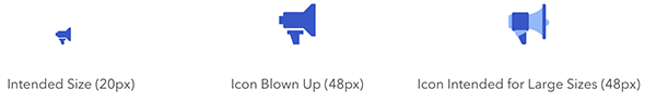 不過,若這些小圖標是你唯一能夠搞得到的素材的話,那么不妨試著將它置于另外一個帶有顏色的圖形當中:這樣的設計不僅能夠讓圖標達到預期的視覺體積,而且看起來要比單純放大,看起來細節會更多一些。