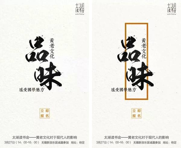 突出主題方式方式多種多樣,不僅只有留白、對比,線條同樣能起到突出主體的作用,如下圖:通過對比觀察我們發(fā)現(xiàn),右側(cè)海報整體感更強(qiáng),主題文案信息更加清晰,主體更明確;其中的原理可以理解為:因為線條的存在,使得主題信息有了一定的范圍,在視覺上等于是在海報中劃定了視覺焦點,從而起到了突出主題的作用;當(dāng)然還有其他的表現(xiàn)形式。