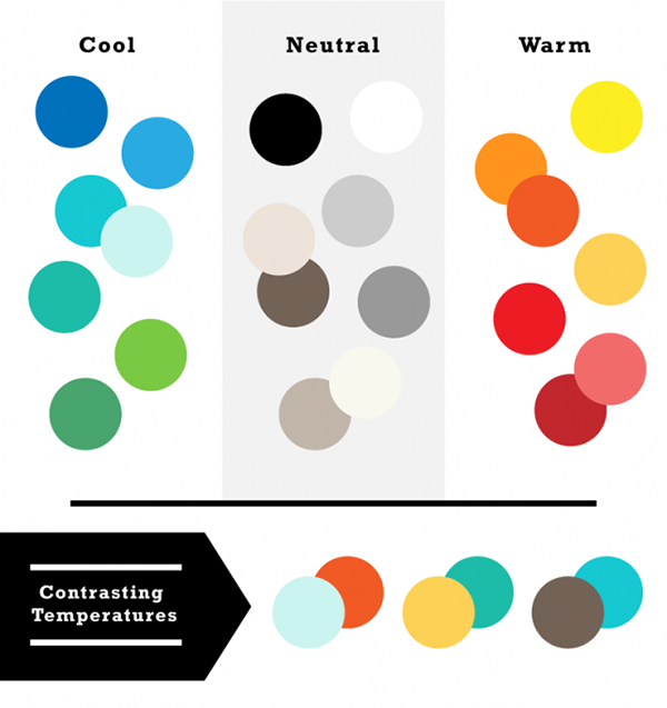 配色同樣最容易被感知到的設計元素,色彩的色相、明暗、飽和度上的差異,都可以制造足夠的對比度。同一種色相下,不同深淺的顏色之間的對比是非常明顯的,而我們最常見的就是在黑色背景上的白色文本和在白色背景上的黑色文本,這種對比度確保了內容擁有基本的可讀性。當然,在實際的色彩搭配當中,對比度足夠明顯的配色方案會更加復雜,通常而言,下面的幾種搭配方式能夠給你對比明顯效果不錯的配色: