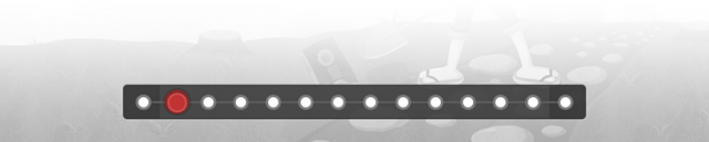 其中左右導(dǎo)航不但要滿足大場景中的畫面切換,還需要滿足第二個(gè)場景中小場景的切換,可以從場景背景圖所在的位置來判斷當(dāng)前狀態(tài)是第幾個(gè)場景從而來控制切換。而寫導(dǎo)航的方式有兩種,可以將14個(gè)點(diǎn)寫在同一組標(biāo)簽內(nèi);或者將⑴個(gè)和最后一個(gè)圓點(diǎn)按鈕與中間的圓點(diǎn)按鈕分開。切換場景時(shí)還應(yīng)注意切換的同時(shí),導(dǎo)航的當(dāng)前狀態(tài)的變化,它表示的是當(dāng)前所處第幾屏起到真正導(dǎo)航的作用。