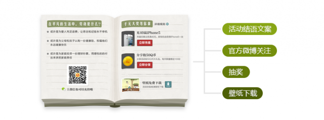 現(xiàn)在我們見到的大部分推廣活動(dòng)往往都以折扣,抽獎(jiǎng)作為噱頭。長期的價(jià)格戰(zhàn)轟炸來刺激消費(fèi)心理的方式已經(jīng)讓用戶形成一定的疲勞感甚至是抵觸感,因此,我們思考能否在勞動(dòng)節(jié)這個(gè)比較傳統(tǒng)但是特點(diǎn)鮮明的節(jié)日中通過新的創(chuàng)意來達(dá)到我們活動(dòng)目的呢?