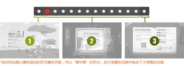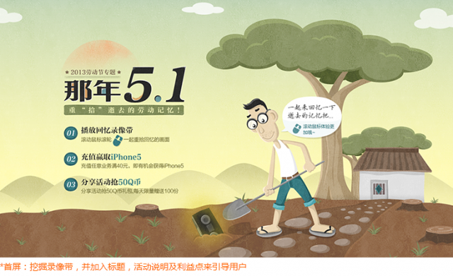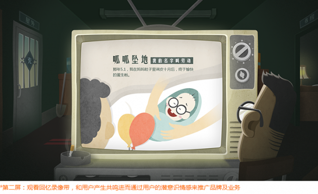 為了能最大化的促發(fā)用戶的潛意識(shí),我們在整個(gè)活動(dòng)中融入挖掘回憶錄像帶這個(gè)合乎邏輯的故事線讓用戶更易產(chǎn)生感情共鳴,當(dāng)然,最主要的還是在這其中融入我們的業(yè)務(wù),使這些原本極具“商業(yè)化”的業(yè)務(wù)內(nèi)容軟化為了一個(gè)個(gè)擊中用戶記憶的“情結(jié)”,這樣既不會(huì)顯得突兀,也能契合用戶的心理活動(dòng)。
