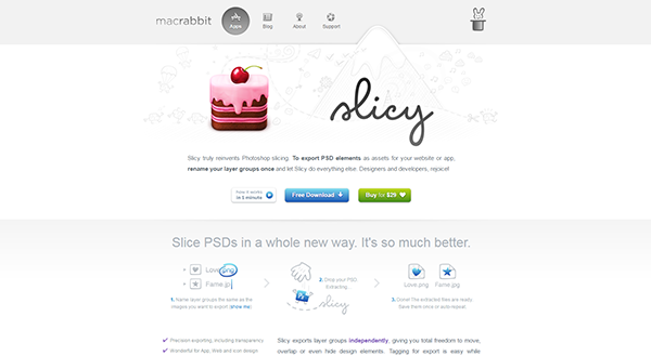 由Macrabblit開發的一款切圖利器slicy,專門為大家解決在切圖過程中遇到的問題。切圖耗時耗力,有了slicy,可以為你節省大把的時間,只需要我們在設計psd文件時將需要切圖的圖層命名去設置一下,如:我要切一張背景的話,你只需要命明好名字,retina版設計稿可以直接生成低清的切圖,非常方便。