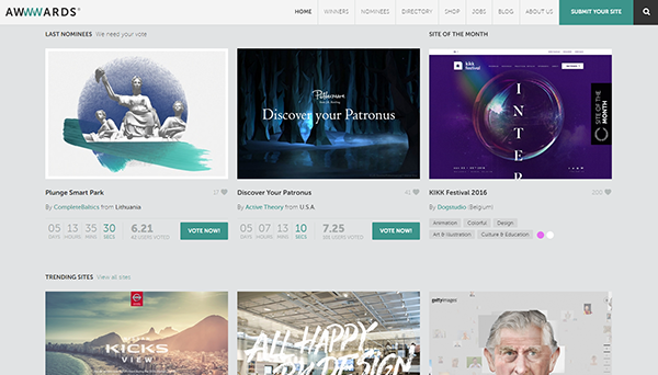 Awwwards是一個(gè)專門為設(shè)計(jì)精美的網(wǎng)站以及富有創(chuàng)意的網(wǎng)站頒獎(jiǎng)的網(wǎng)站,Awwwards上的獲獎(jiǎng)網(wǎng)站來自全世界優(yōu)秀的網(wǎng)頁(yè)設(shè)計(jì)師之手,網(wǎng)站每天評(píng)選出一個(gè)“Site of the Day”。如果您想增加自己的視野,想提升自己的設(shè)計(jì)水平,想學(xué)習(xí)國(guó)外優(yōu)秀設(shè)計(jì)網(wǎng)站的設(shè)計(jì)思路,Awwwards一定可以幫到你,在這里你可以找到大量的實(shí)例。