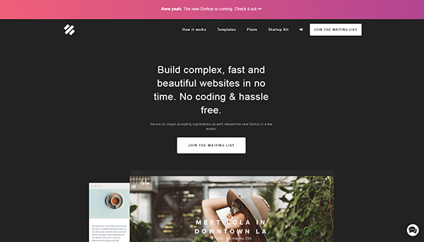 隨著網站的好處被更多的企業熟知,從而使得互聯網中網站數量不斷地增加,不但如此,從而也導致互聯網中出現很多的模板網站,而lDorkoy 是一款只需要進行模塊托拽就可以構建網站的設計工具,其中可供使用的模塊超過100種,相信在眾多設計模板中,總有一款是適合你的企業。