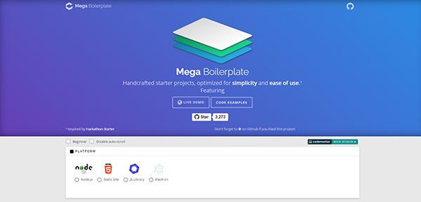 Mega Boilerplate是一組精心挑選的項目,為了保證易用性它們都經過了簡單的優化,它們可以同Node.js、靜態HTML5站點等進行聯動,幫助設計師節約時間的同時設計出更多的優秀的作品。