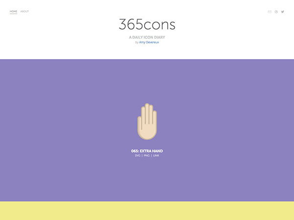 365cons不知道作為設(shè)計(jì)師的你是否了解對(duì)其有過了解,它是Amy Devereux所制作的每日更新的“圖標(biāo)日記”,這些圖標(biāo)被設(shè)計(jì)成不同的樣式,對(duì)于設(shè)計(jì)師尋找靈感來說是相當(dāng)不錯(cuò)的選擇,如果現(xiàn)在的你也在迷茫,不知所措的話,不妨多瀏覽些這樣的網(wǎng)站,用其作為靈感來源還是相當(dāng)不錯(cuò)的哦!