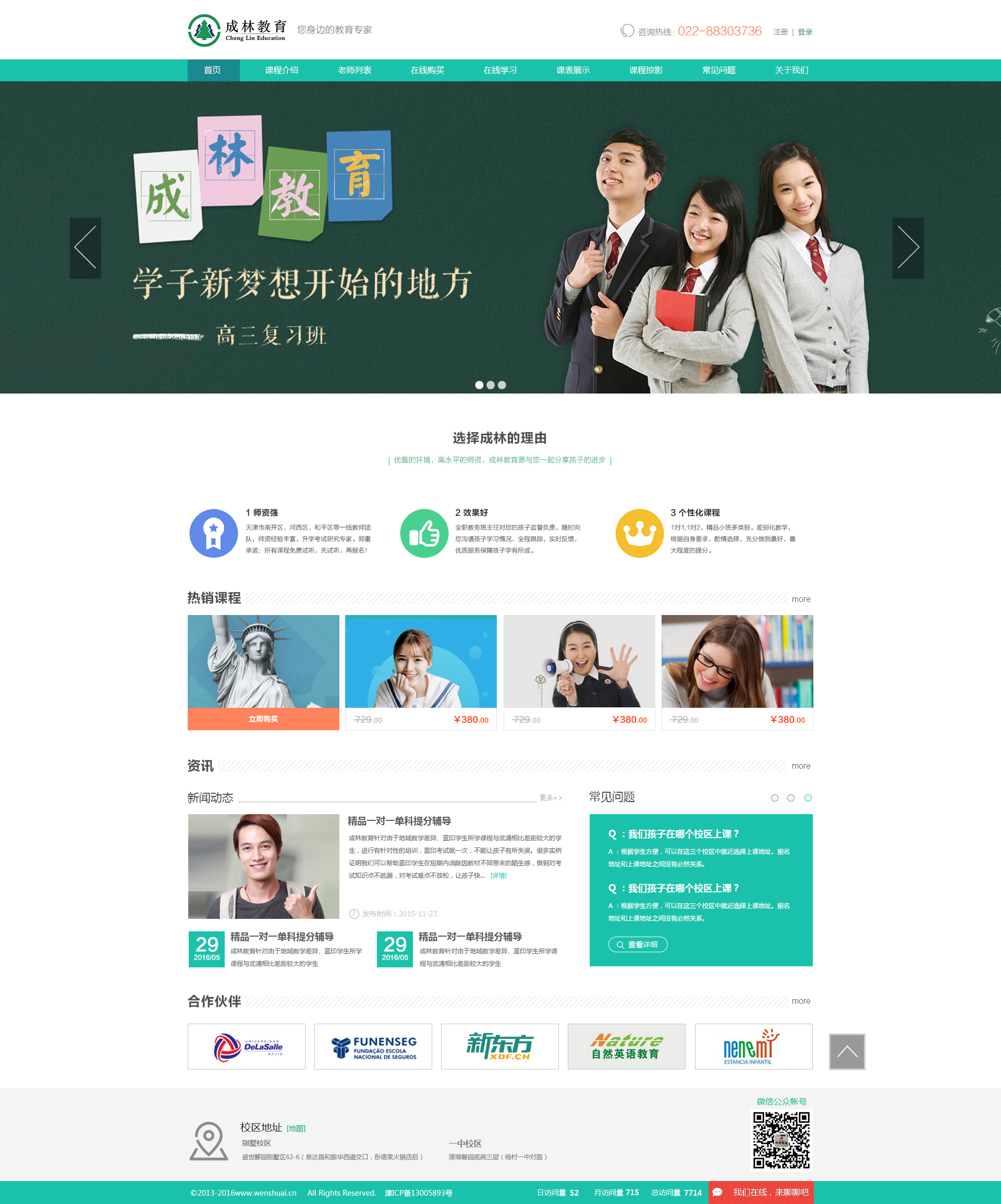 成林教育一致堅信沒有教不好的學生,只是沒有找到能教好學生的方法。現設中高考課程輔導、精品一對一、競賽課程培訓等培訓項目,根據學生的不同學習層次設置中高考3人精品班、同步提高班、名師精品大課堂、預科班、銜接班、VIP高端精品一對一等各種班型課程,采用全國獨創“1+1面授加1+1情境”混合教學模式,為學生和家長提供多樣化和個性化的優質服務。